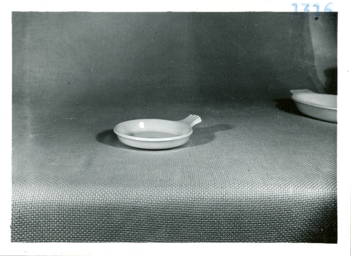 Serveringsfat med handtag från Bo Fajans, omkring 1900-talets mitt.