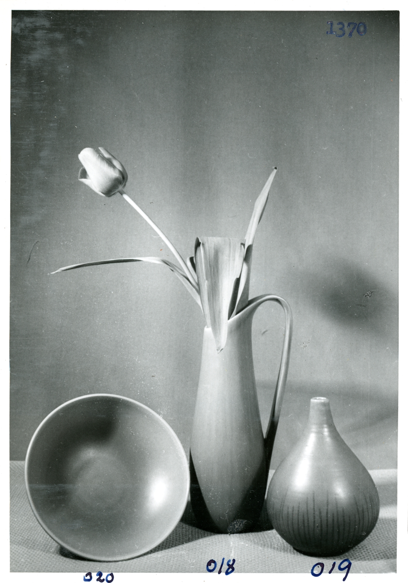 Skål, krus och vas från Bo Fajans, formgivare Berit Ternell, omkring 1900-talets mitt.