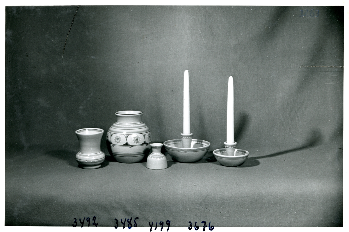 Vaser och ljusstakar från Bo Fajans, formgivare Eva Jancke-Björk, omkring 1900-talets mitt.