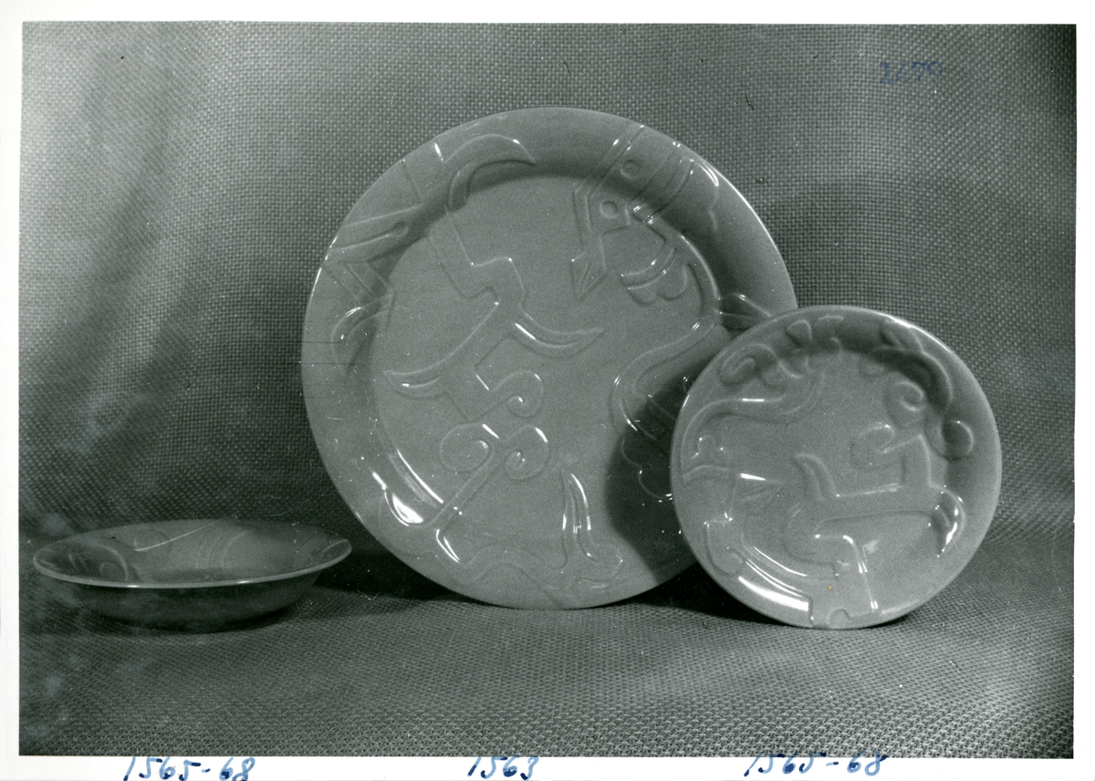 Assietter samt fat från Bo Fajans, formgivare Allan Ebeling, tidigt 1900-tal.