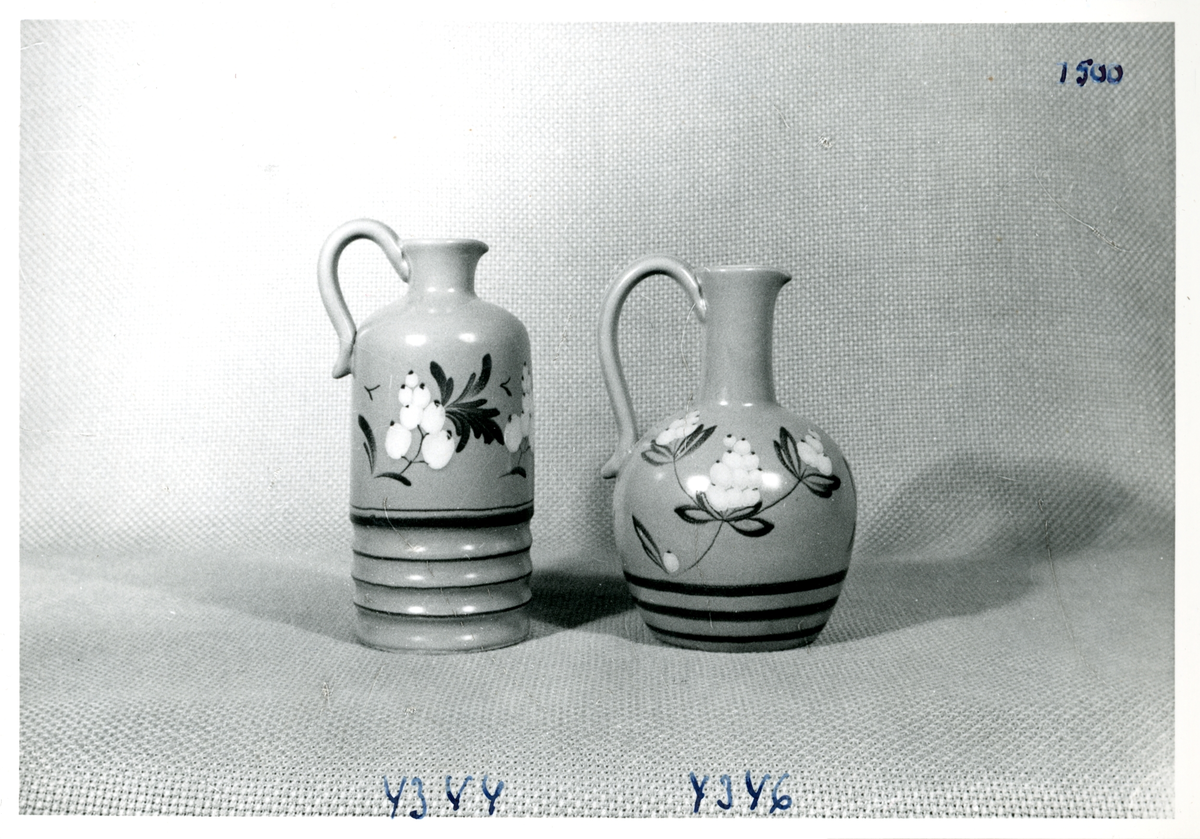 Likörkrus 4344 och 4346 från Bo Fajans, formgivare Eva Jancke-Björk, omkring 1900-talets mitt.