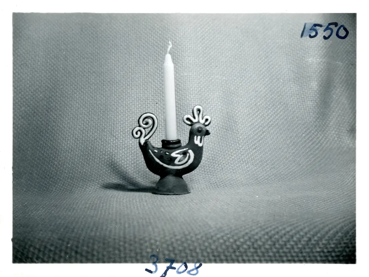 Ljusstake 3708 formad som en höna från Bo Fajans, formgivare Eva Jancke-Björk, omkring 1900-talets mitt.