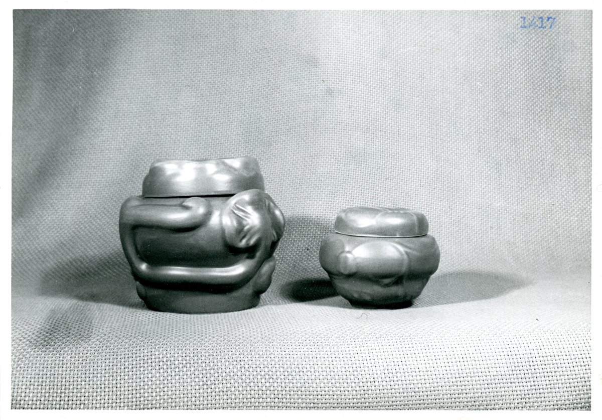 Burkar med lock från Bo Fajans, omkring 1900-talets mitt.