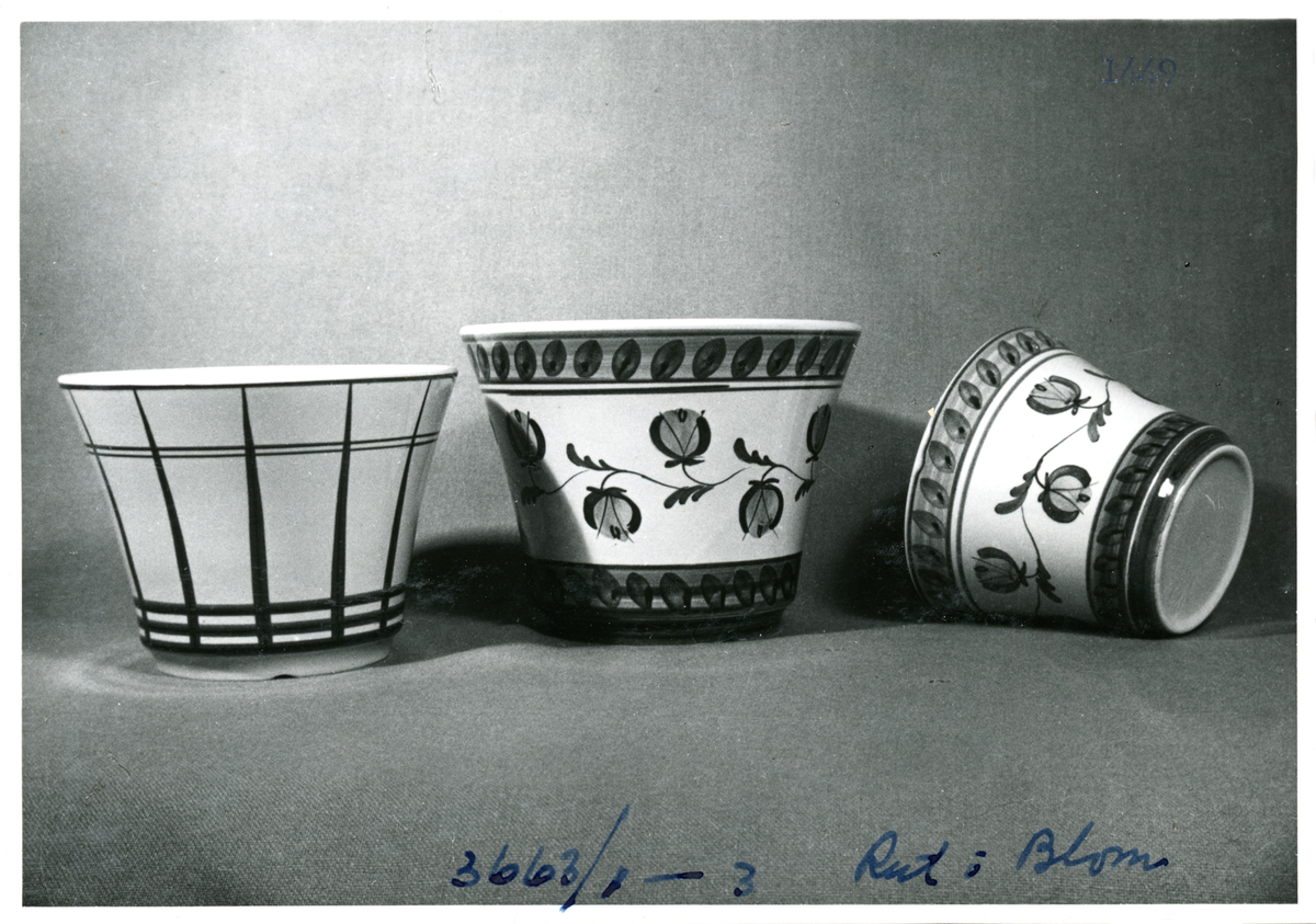 Blomkrukor "Rut i Blom" från Bo Fajans, formgivare Eva Jancke-Björk, omkring 1900-talets mitt.