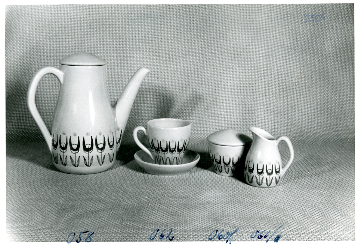 Kaffeservis från Bo Fajans, formgivare Berit Ternell, omkring 1900-talets mitt.