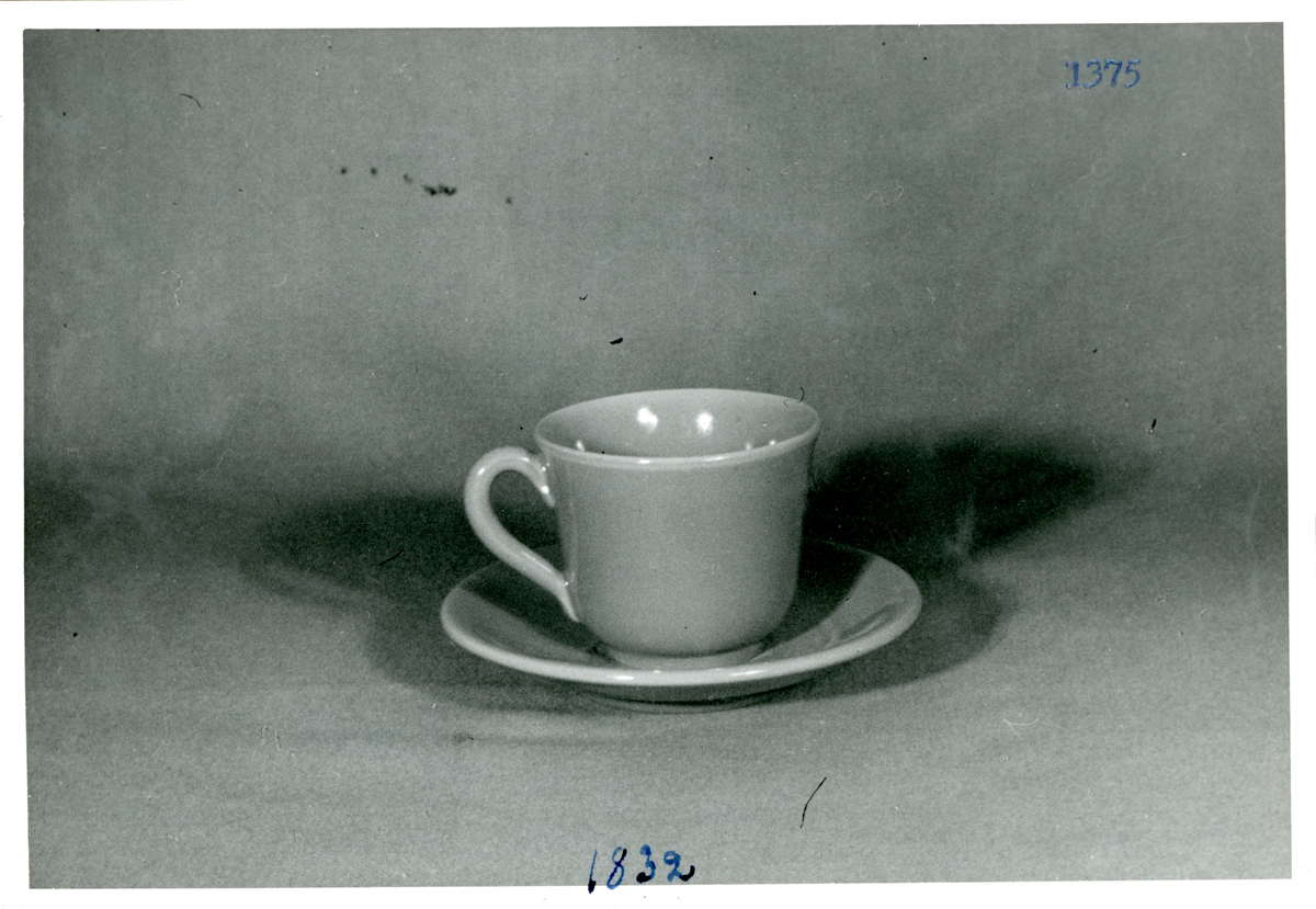 Te-/kaffekopp med fat från Bo Fajans, omkring 1900-talets mitt.