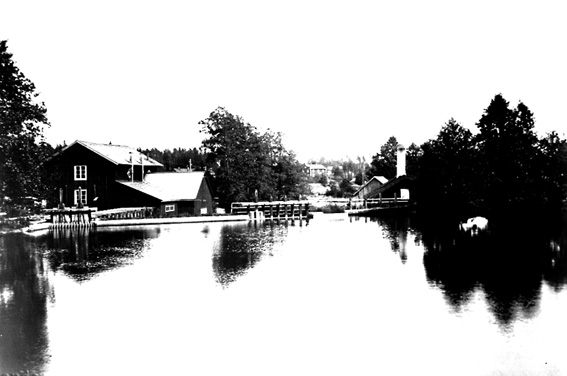 Större och mindre byggnader vid dammanläggning.