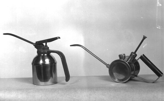 Två smörjkannor av olika modell.
