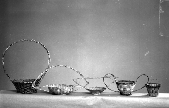 Fem korgar i olika storlekar och modeller med handtag.