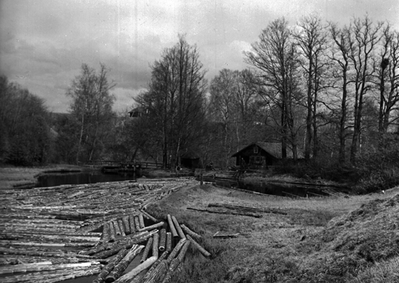 Flottningstimmer i vattendrag.