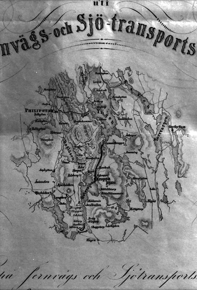 Järnvägs- och sjötransportkarta över Filipstads kommun.