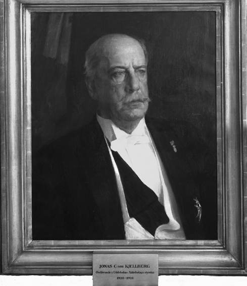 Målning föreställande Jonas C:son Kjellberg, ordförande i Uddeholms aktiebolags styrelse 1920-1928. Porträttet utfört av David Tägtström.