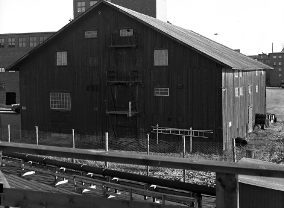 Större byggnader bakom staket.