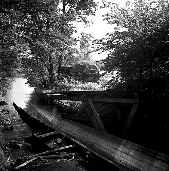 Någon form träränna i vattendrag.