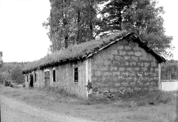 Gräsbevuxen, murat byggnad.
