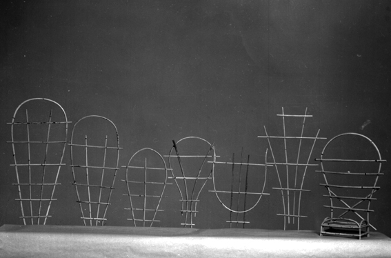 En blomampel, samt sex blomstöd i olika storlekar och modeller.