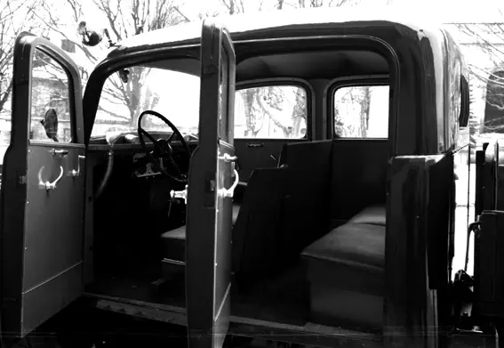 Bil med öppen fram- och bakdörr.