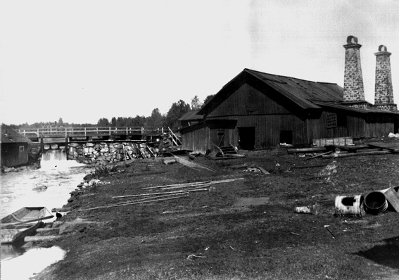 Förmodligen nedlagd hytta vid vattendrag.