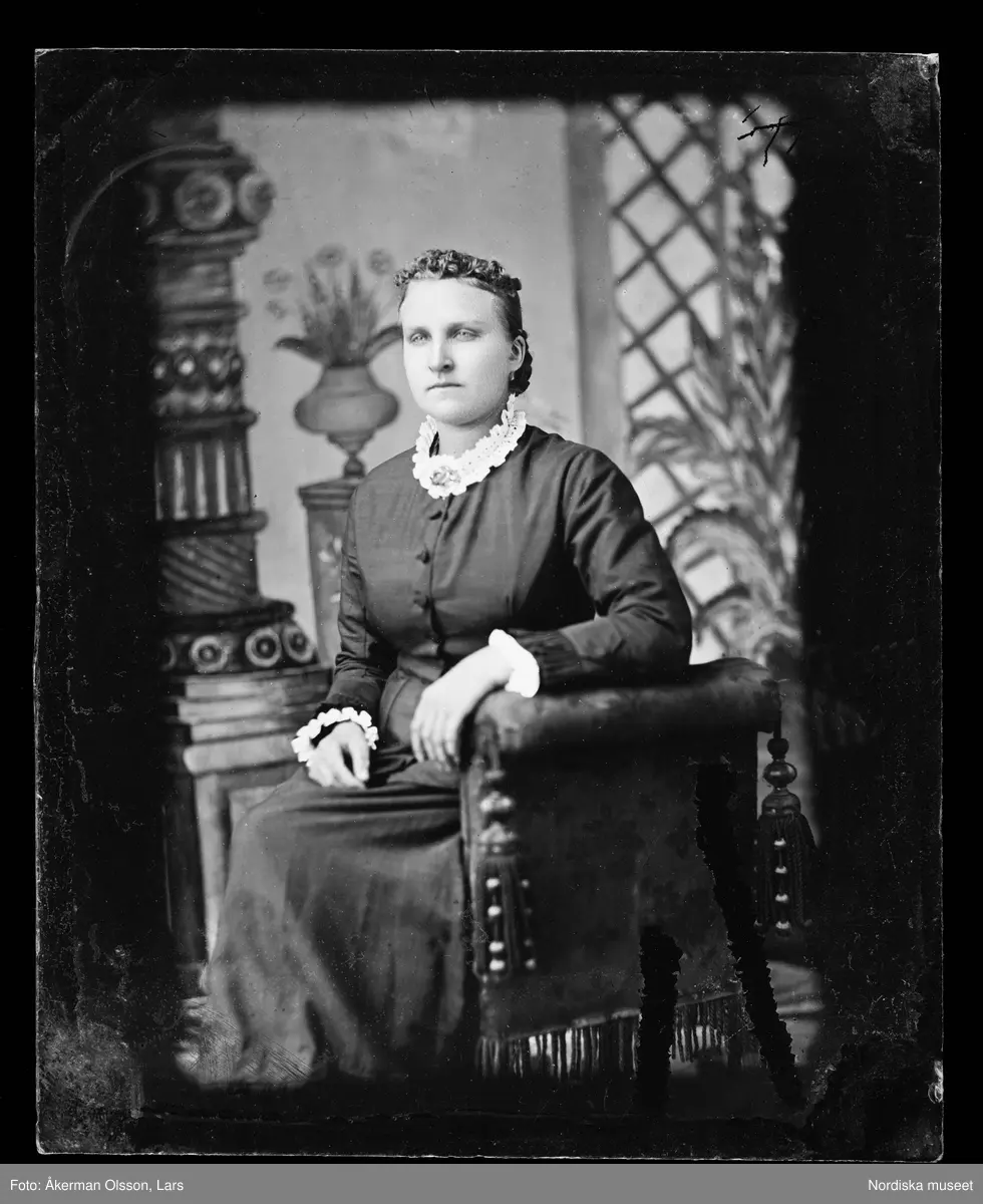 Porträtt av en sittande kvinna.