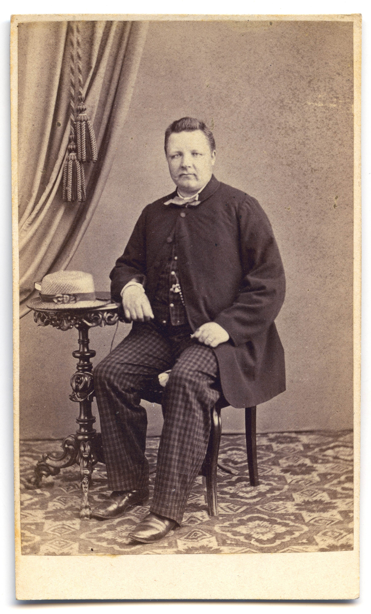 Porträtt på en man en man i helfigur, sittande.