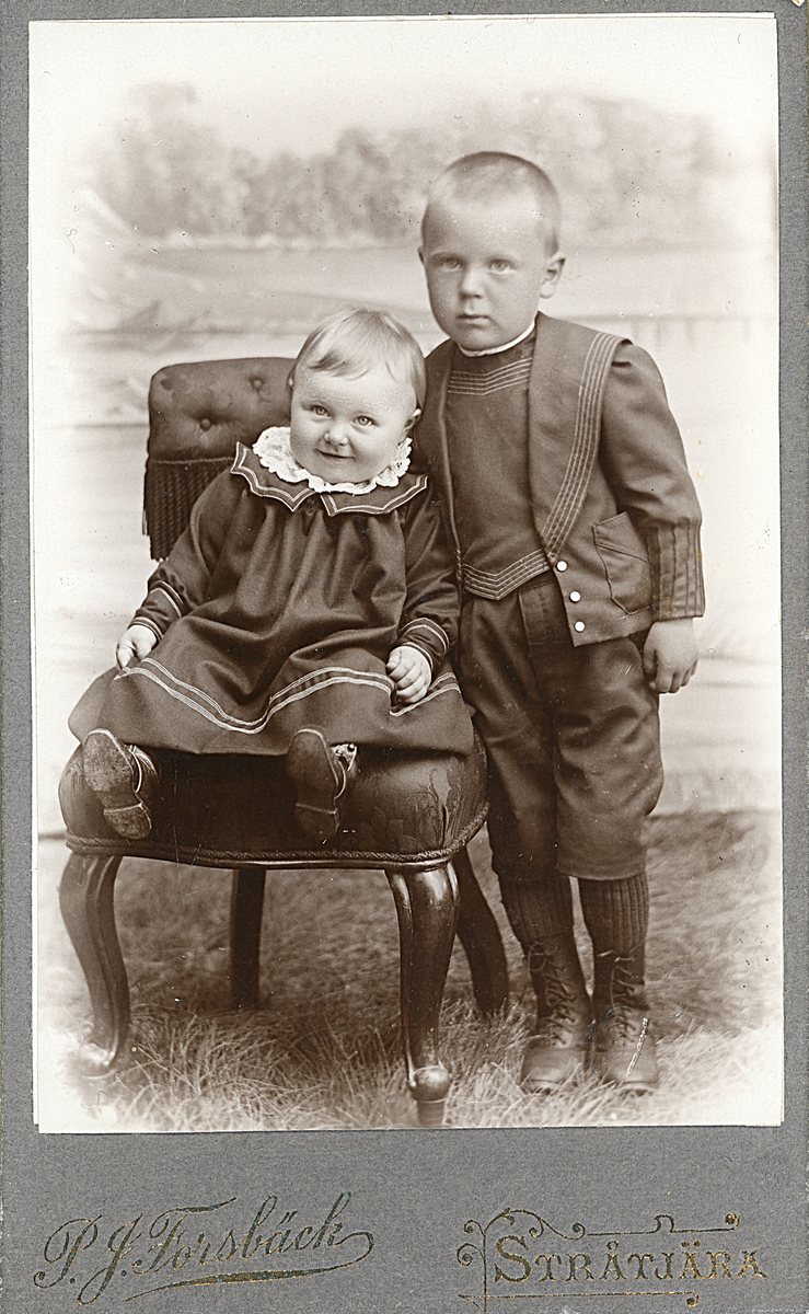 Porträtt av Olle och Per Lingvall (?) Långbo 1903 (enligt lite suddig text i album).