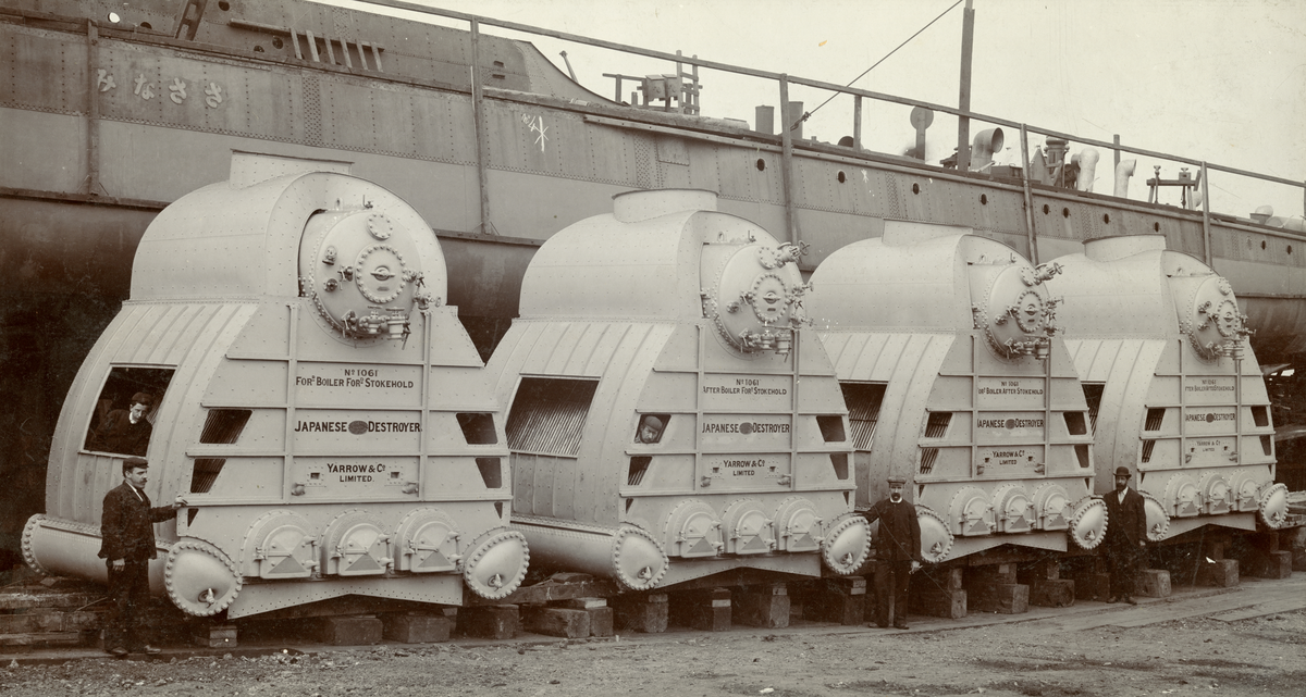 Fyra vattenrörspannor tillverkade av varvet Yarrow & Co åt en japansk jagare.