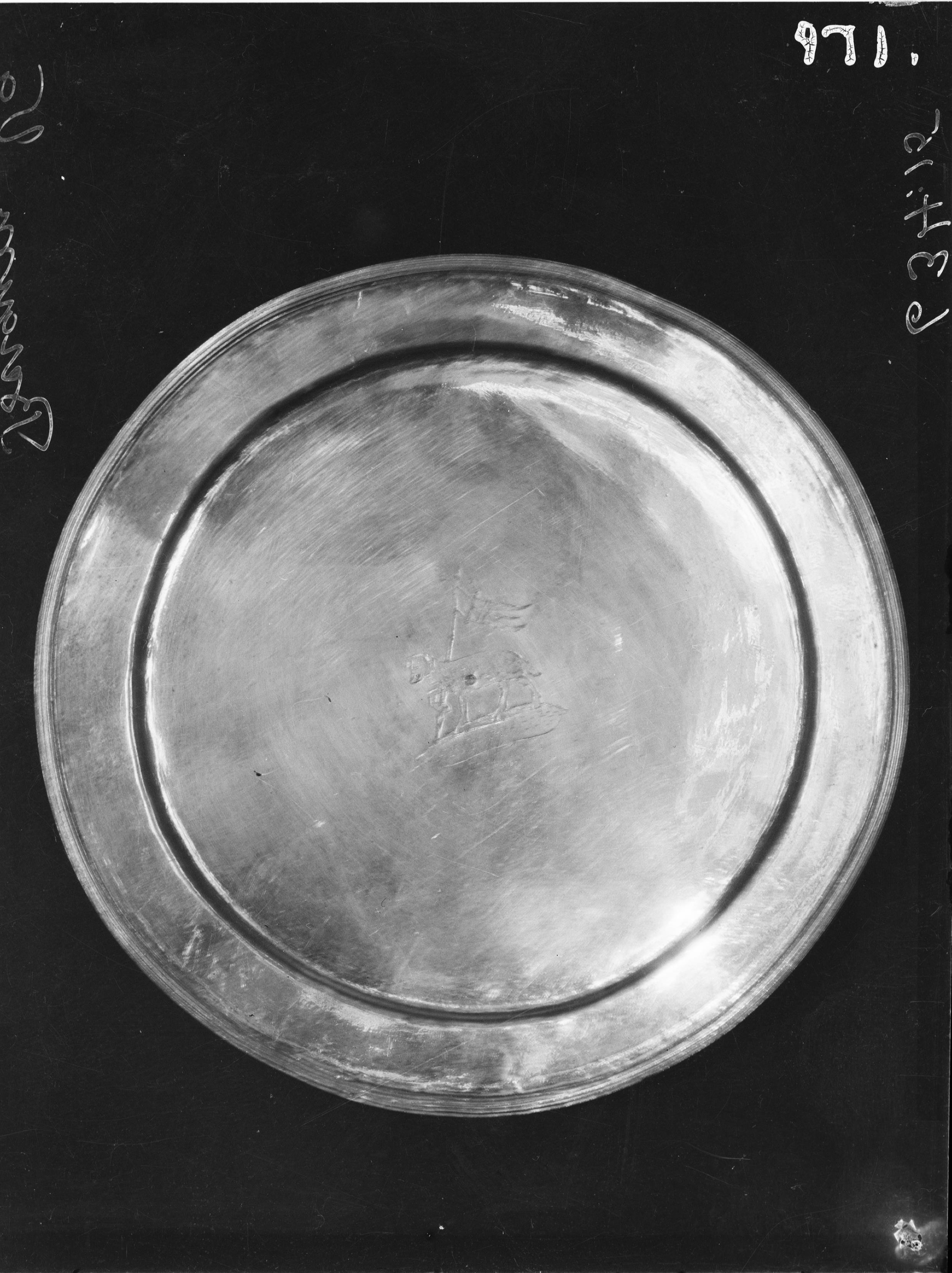 Patén, mittgravyr med lamm med segerfana, tidigt 1400-tal.