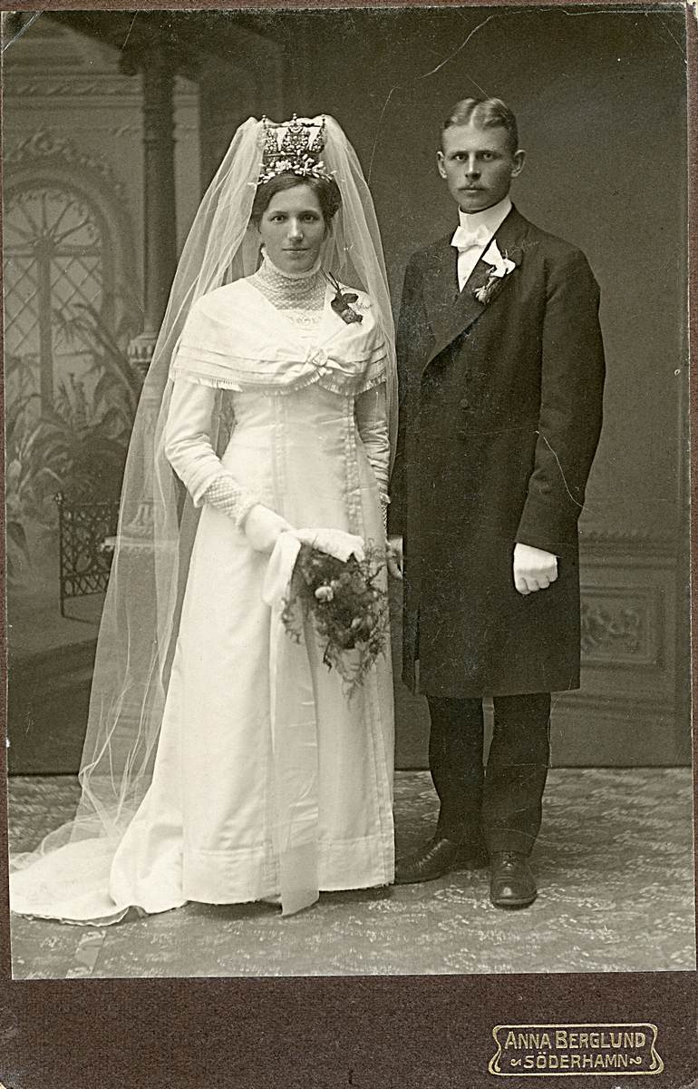 Bröllopsporträtt av Anna och Bror Schönning, Elgnäs (enligt text i album).