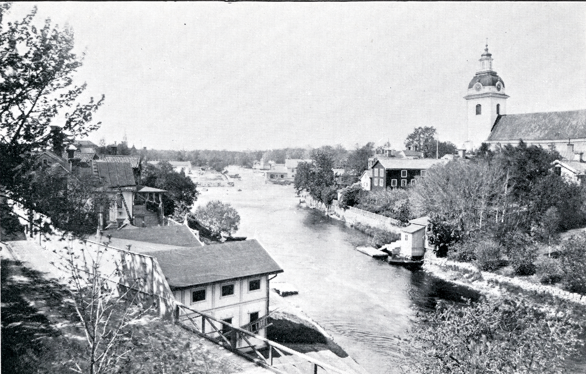 Vy över gavleån från Gamlebron, Gefle (enligt text i album).