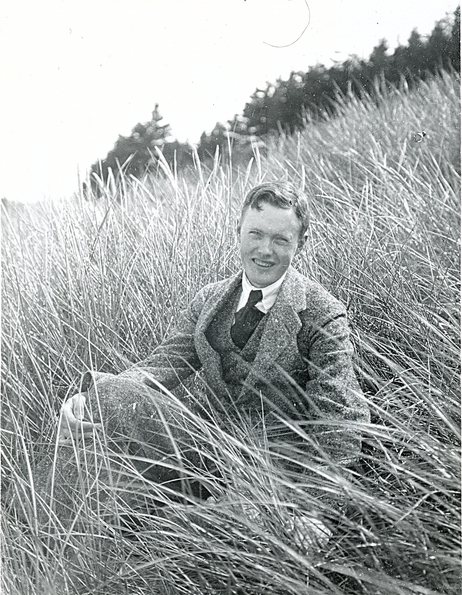 Danmark 1920. Tandläkare Gunnar Högberg sitter i strandvassen vid badorten Huleröd i Danmark.
