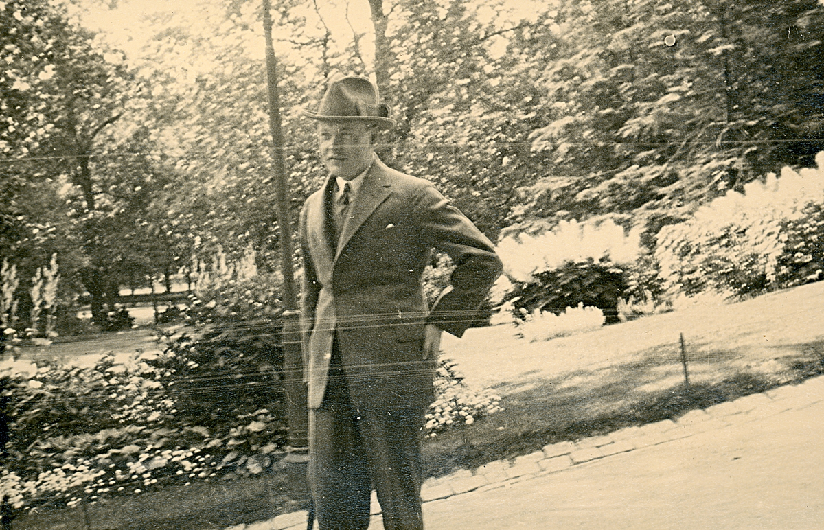 Tandläkare Gunnar Högberg på promenad i Humlegården, Stockholm 1927.