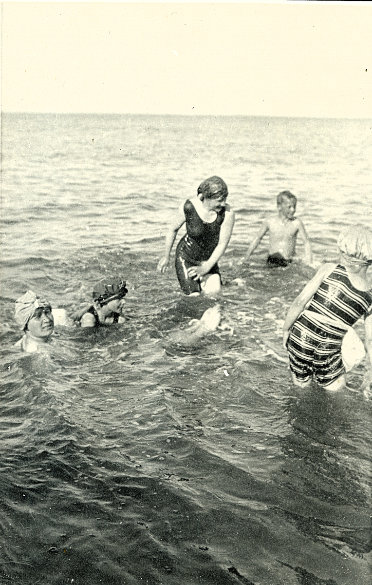 Ett gäng semesterfirare som badar i Huleröd. Danmark 1920