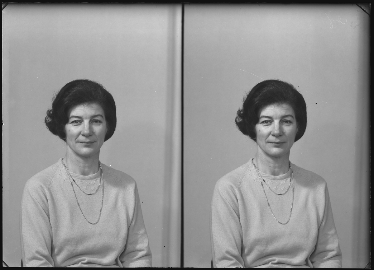 Porträtt-pass. Fru Ann-Marie Pettersson, Hantverkargat. 8, Kolbäck. Ur Gustaf Åhmans samling.