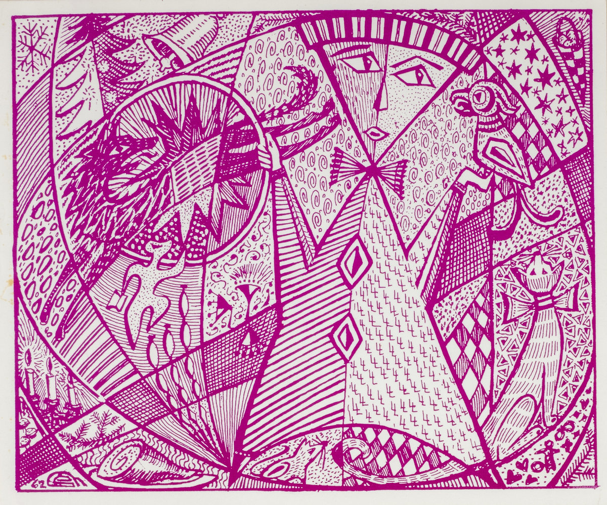 Förlaga till julkort i rödlila.