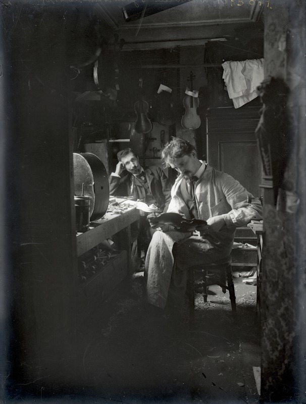 Violinist Edwin Witt och fiolmakaren, barberaren A. Waldheim, Jacob-Hansens hus.