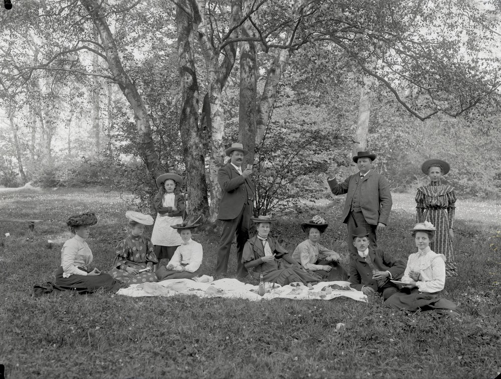 Slaktaremästare Marcusson och Anton Andersson med familjer på Söndagsutflykt i Ramlösa.
