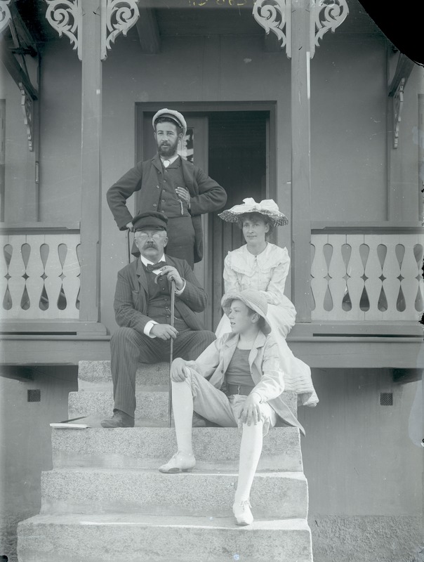 Gustaf af Geijerstam med maka och son. I bakgrunden den framstående tyske kritikern Siegfried Jacobsohn.