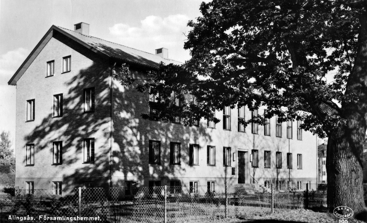 Bild tagen snett framifrån på församlingshemmet vid Norra Ringgatan. Den invigdes i september 1939.