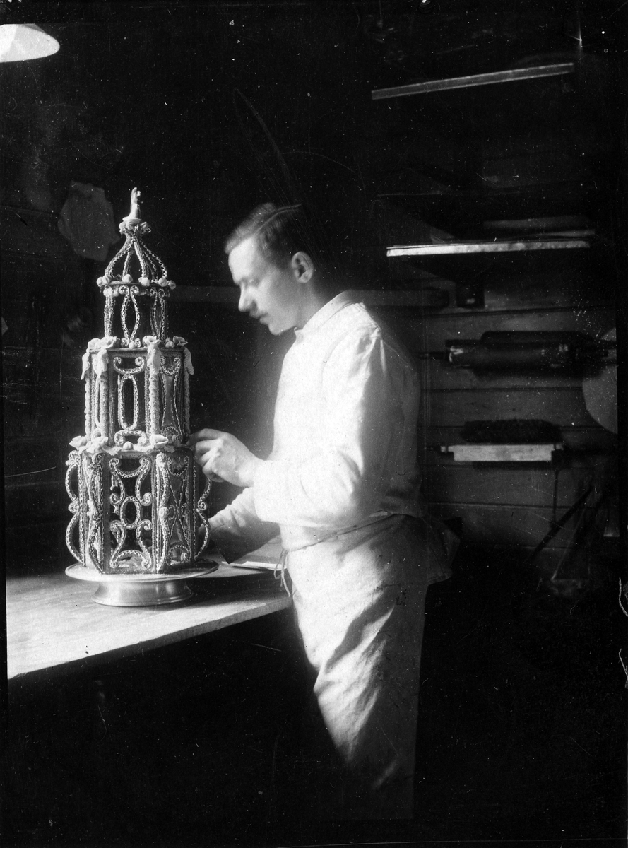 Törnbloms konditori, Färgaregatan, kvarter Pärlan. Bertil Törnblom skapar ett bakverk.