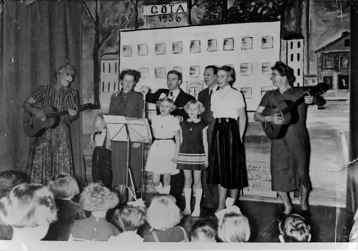 Bild på ett sånguppträdande på personalfest vid Nya Läderfabriken AB Göta.