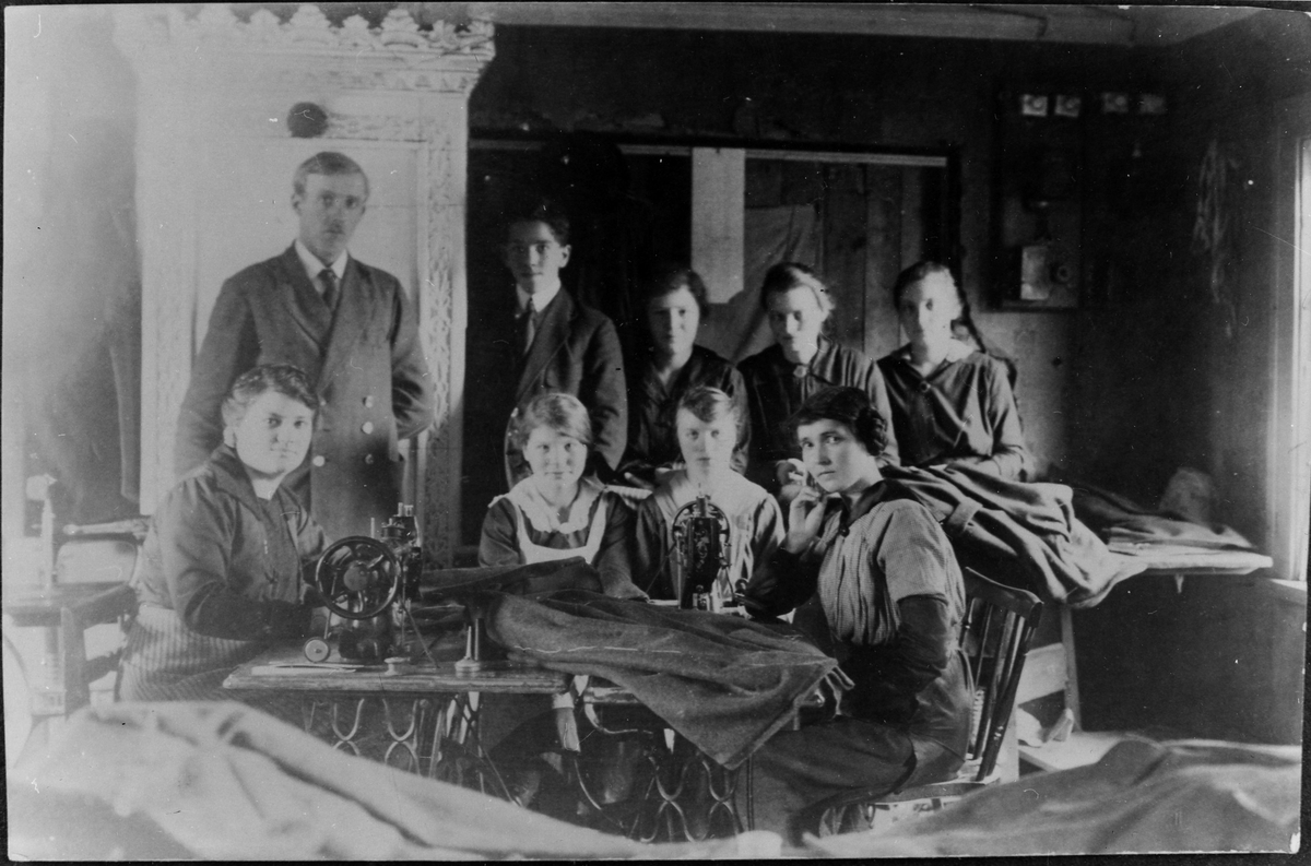2 män och 7 kvinnor annställda på en syverkstad i Alingsås. Eventuellt på Torggatan kv. Hägern.