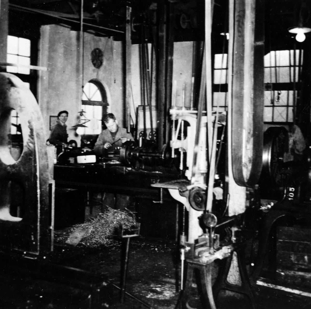 Två män i maskinverkstaden på AB Elektro-Apparat i kvarteret Yxan.