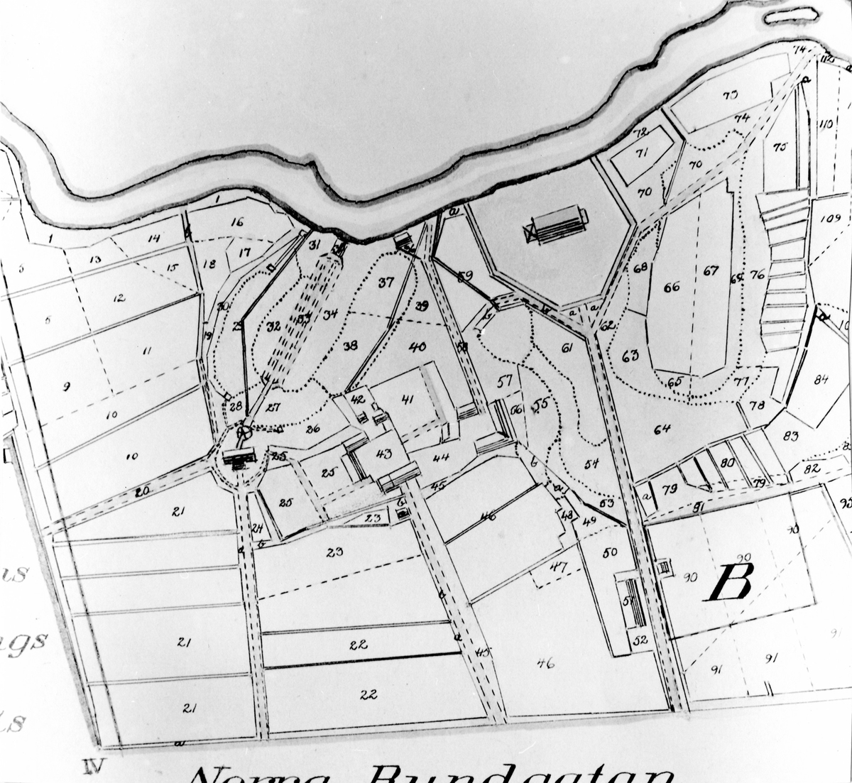 Detaljritning av skiftekarta över Holmens och Stockslycke byar 1847.