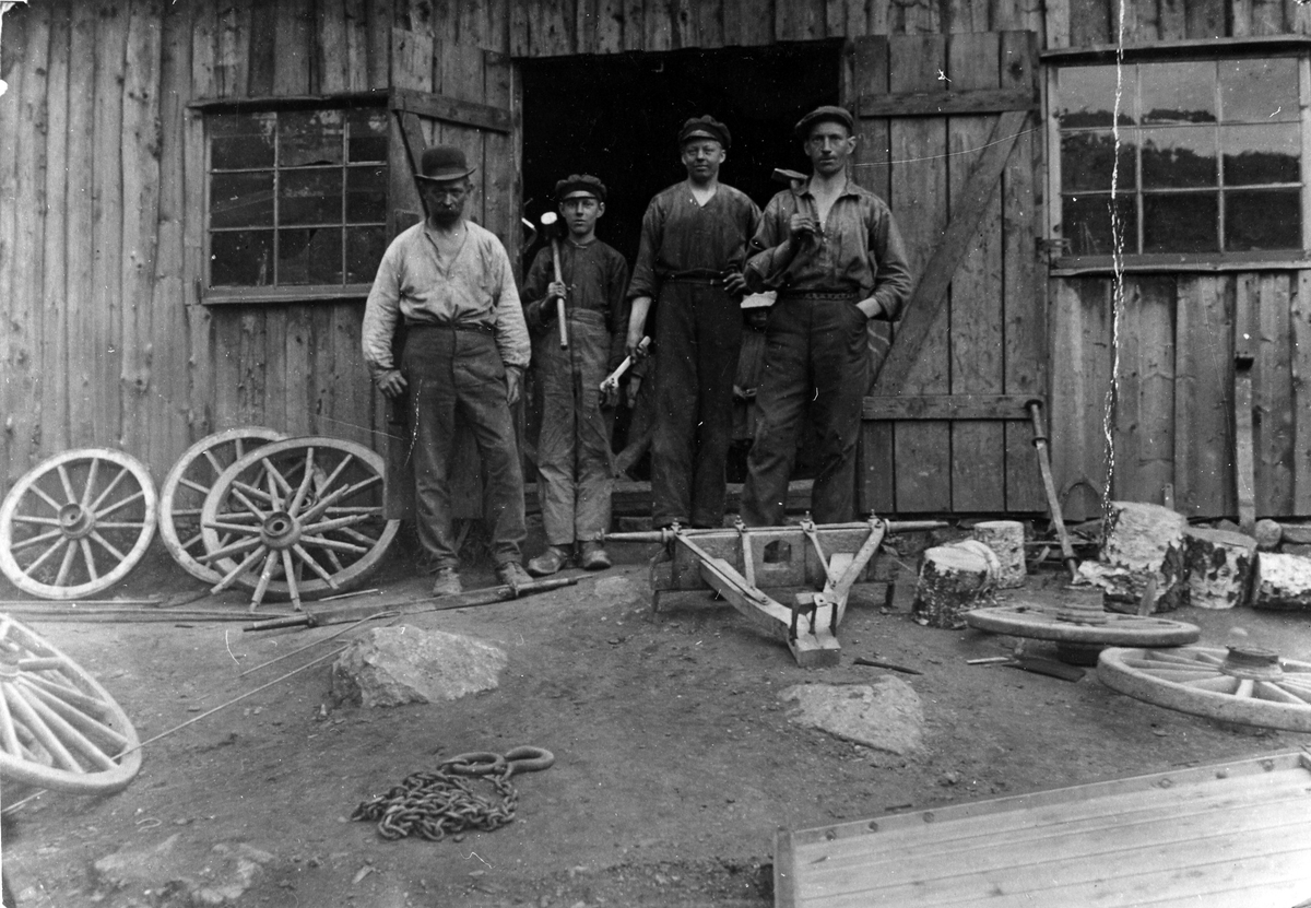 Fyra stycken smeder på Göranssons Smedja i Gråbo.