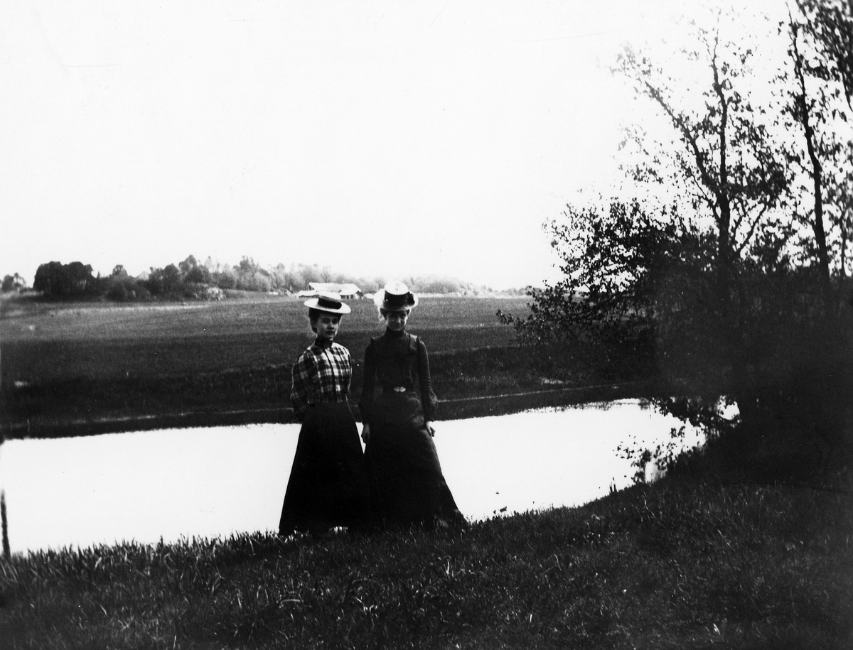Gruppbild. Två kvinnor, Annie Michelsen och Maria Eriksson vid en sjö.