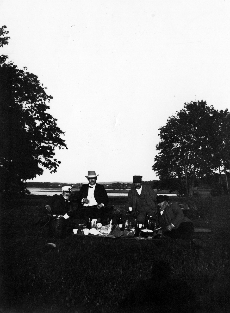 De fyra herrarna Albert Andersson, bryggmästare Möller, Alfred Larsson och Emil Sandberg fotograferade vid Lövekulle.