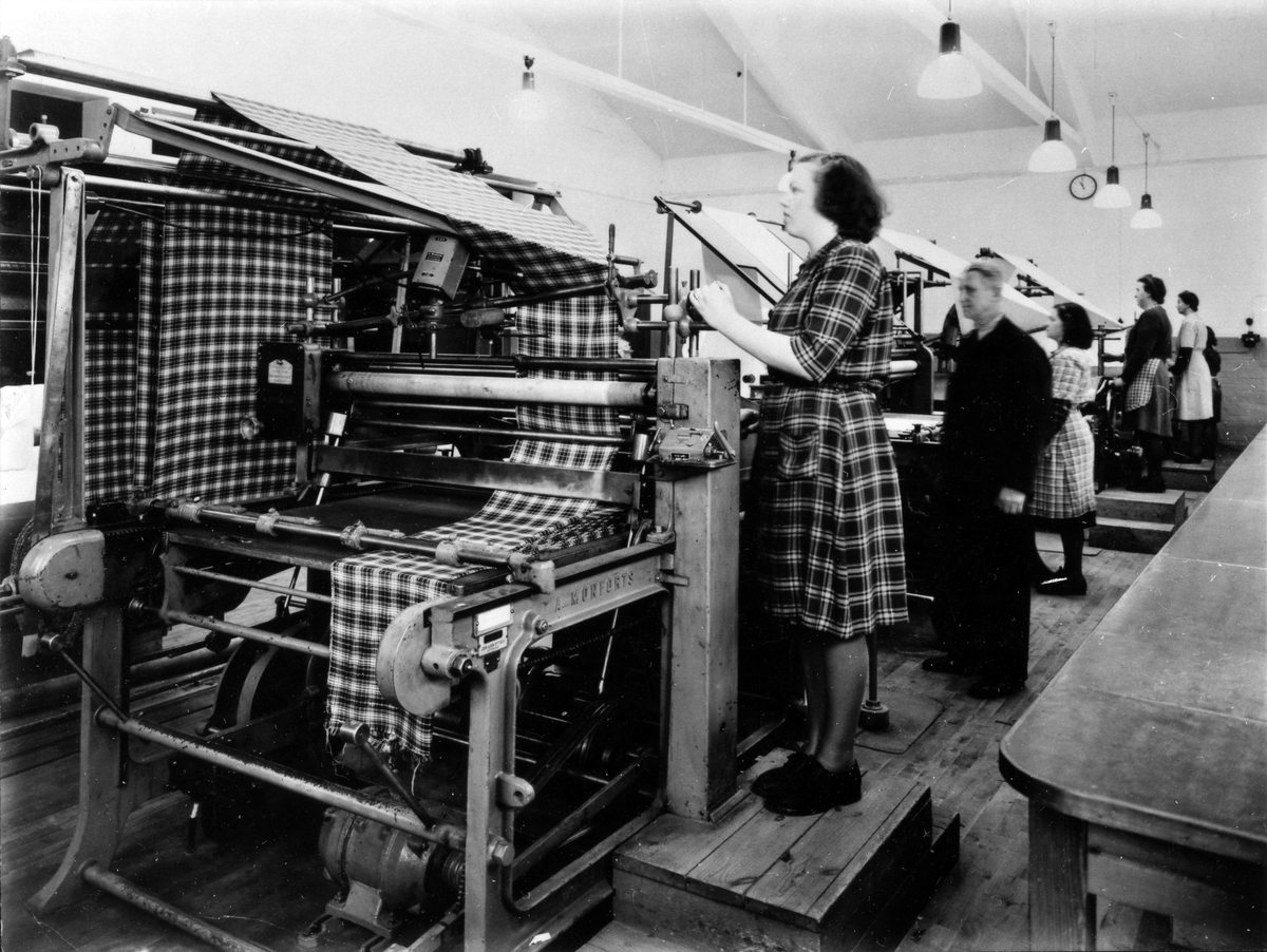 Alingsås Bomullsväveri's nya fabrik i kvarteret Vimpeln. Avsyning av arbete.