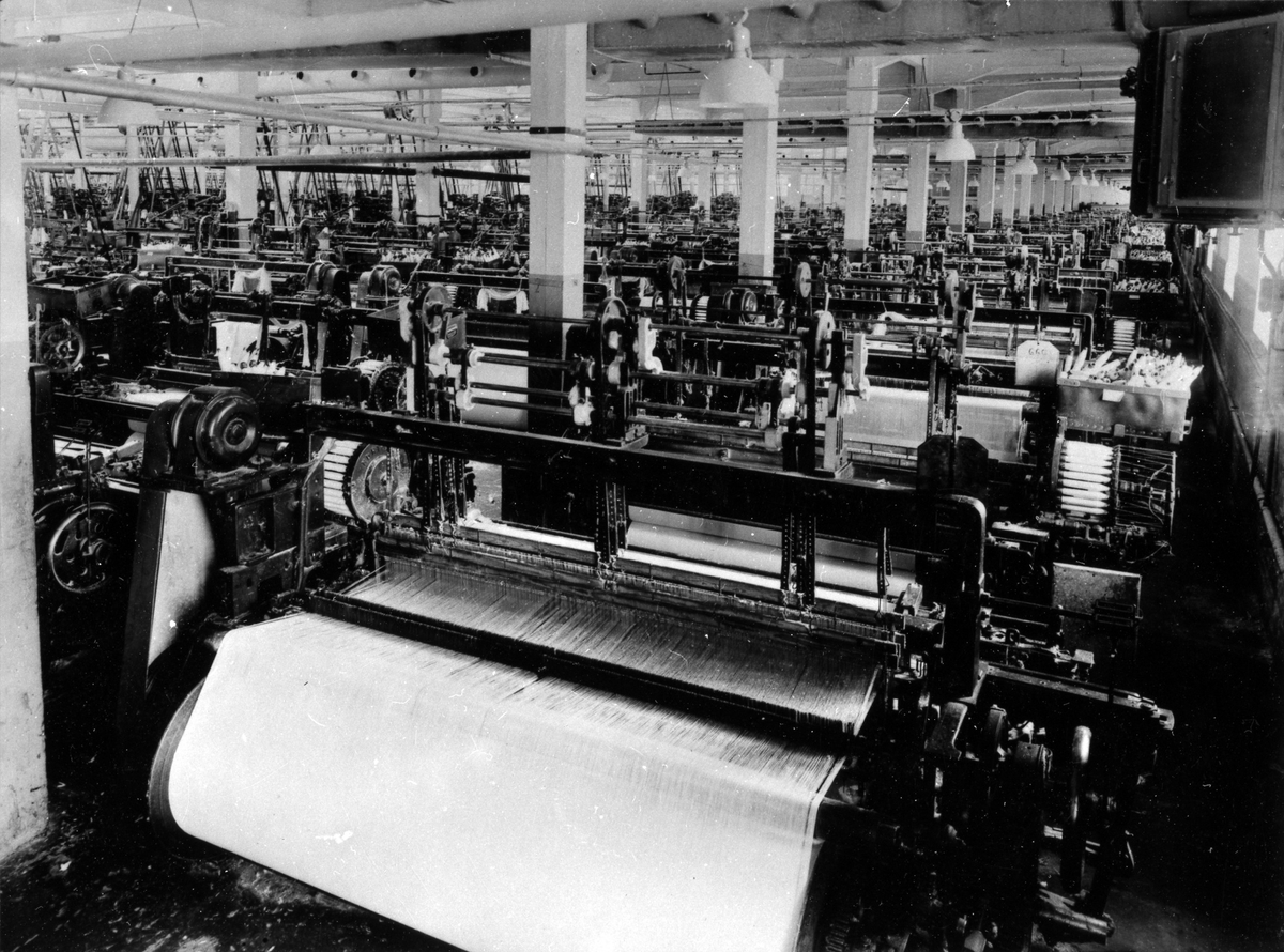 Vävsalen i den nya fabriken i kvarteret Vimpeln på Alingsås Bomullsväveri