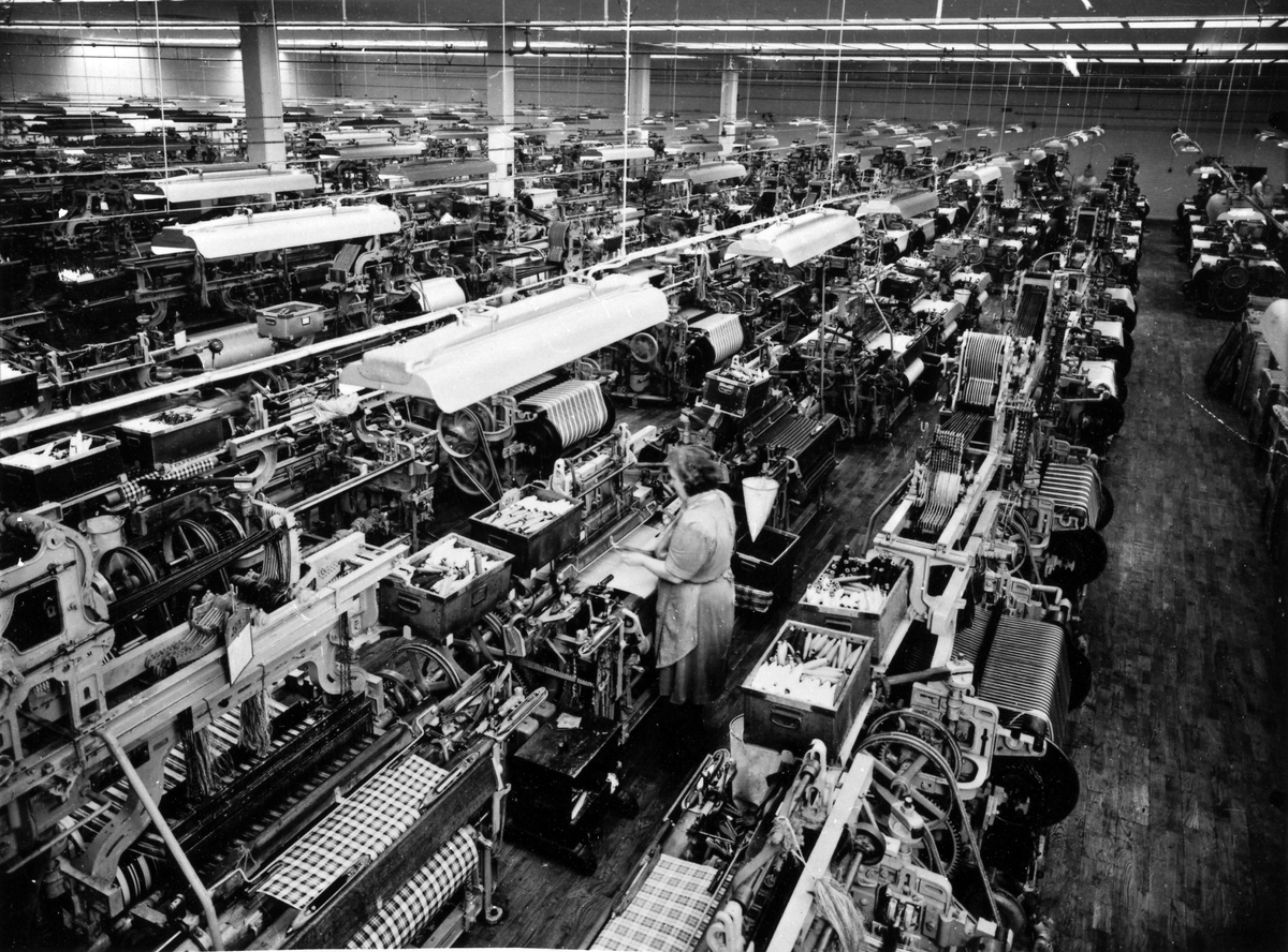 Alingsås Bomullsväveri. Nya fabriken i kvarteret Vimpeln. Kulörtväveriet.