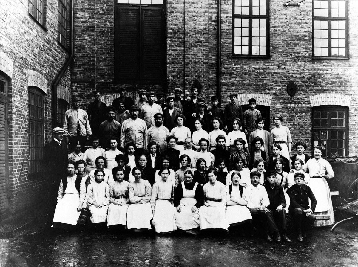Alingsås bomullsväveri. Personal vid gamla fabriken i kvarteret Fliten.